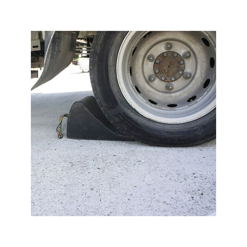 Butée de roue pour véhicule léger ou poids lourd et autocar. Réf. 300246 et 36951 fabriquées en caoutchouc dur résistant aux UV, huile et sel. Réf. 306617 fabriquée en PEHD. Excellente adhérence au sol et au pneu. Facile à manipuler et à ranger grâce à une sangle ou poignée de préhension solide.