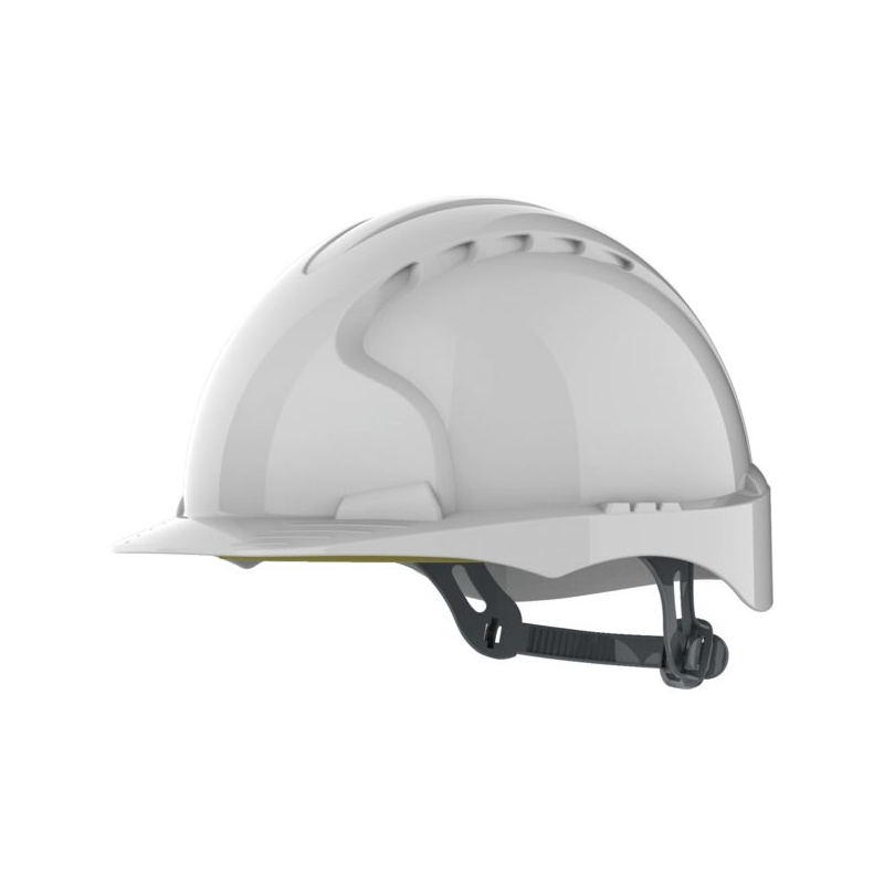 Calotte en polyéthylène haute densité. Visière courte et ventilée. Basane anti-sudation en Chamlon, coton égyptien avec enduit poreux en PU. Serrage glissière. Poids : 375 g Coloris ventilé : blanc, bleu, jaune, orange, rouge, vert Coloris non ventilé : blanc Normes : EN 397 - EN 50365 (1000 V) classe 0
