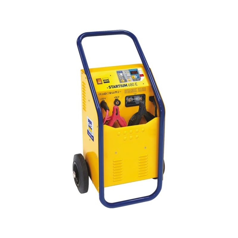 Chargeur démarreur automatique compact pour batterie 12 et 24 V. La charge est sans surveillance avec maintien de la tension en fin de cycle (Floating). L’appareil peut rester connecté à la batterie du véhicule en toute sécurité. Protection de l’électronique embarquée. Démarrage automatique, l’appareil délivre du courant uniquement lorsque l’on actionne le contact du véhicule, plus besoin de commande à distance. Fonction test de l'alternateur. Roue et poignée intégrées pour faciliter le transport. Fourni avec câbles et pinces isolées. Alimentation : 230 V