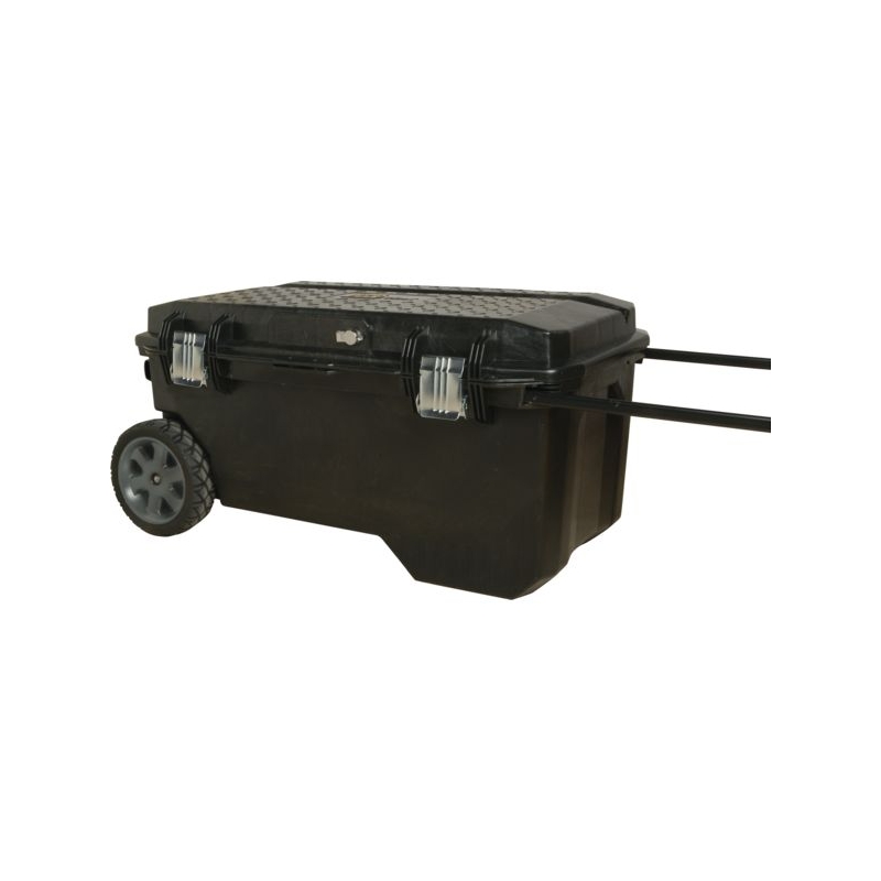 En polypropylène. Attaches métalliques anticorrosion et serrure à clés. Roues grand diamètre tout terrain, poignée télescopique bi-matière. Rainure en V pour des découpes d'appoint. Nombreux rangements verticaux et plateau porte-outils intégré. Etanche à l'eau et à la poussière (IP54). Volume utile : 113 l Dimensions : 910 x 520 x 430 mm. Livré sans outils.
