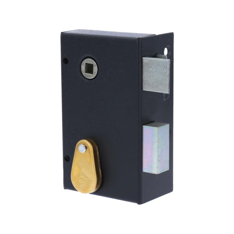 Coffre de grille 4 gorges en acier nickelé - 24 variures. Livré avec gâche et 2 clés. Saillie pêne : 21 mm Finition : époxy noir Modèle horizontal : Coffre : 140 x 88 x 25 mm Entraxe : 57 mm Axe : 56 mm Fouillot carré : 6 mm Modèle vertical : Coffre : 70 x 116 x 25 mm Entraxe : 68 mm Axe : 44 mm Canon : 40 mm Fouillot carré : 7 mm Conditionnement : boite