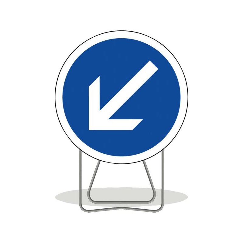 Pour une signalisation temporaire de prescription. En acier galvanisé, sur pied métal solidaire. Forme ronde - classe T1. Norme : NF-TSI-03