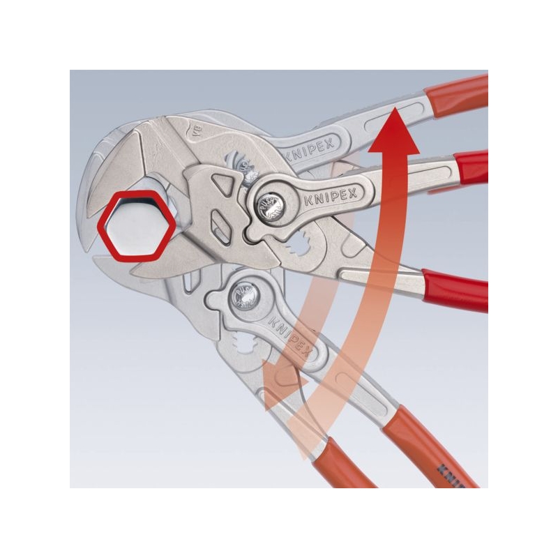 Remplace tout un jeu de clés plates, métriques et en pouce. Mâchoires lisses n’endommageant pas les supports. Réglage par simple pression du bouton. Poignées gainées en PVC.