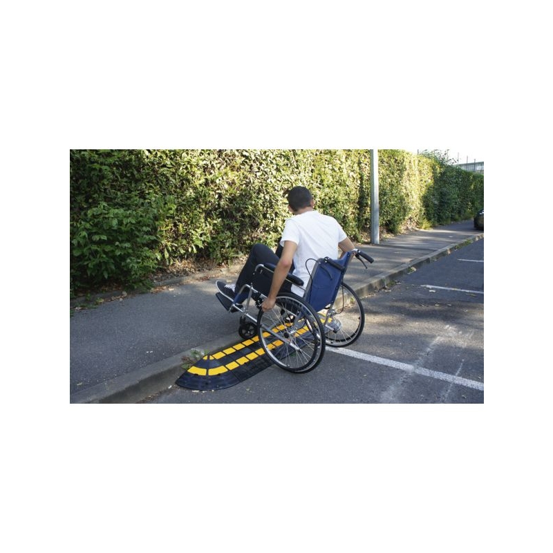 Idéale pour le passage de trottoir, en installation fixe ou provisoire. Robuste, elle supporte le passage de chariots élévateurs et de camions. Équipée de 2 passages de câbles servant aussi à l'écoulement des eaux de pluie. Fixations non fournies, collage possible. Capacité de charge : 40 t L x l x H : 600 x 300 x 100 mm